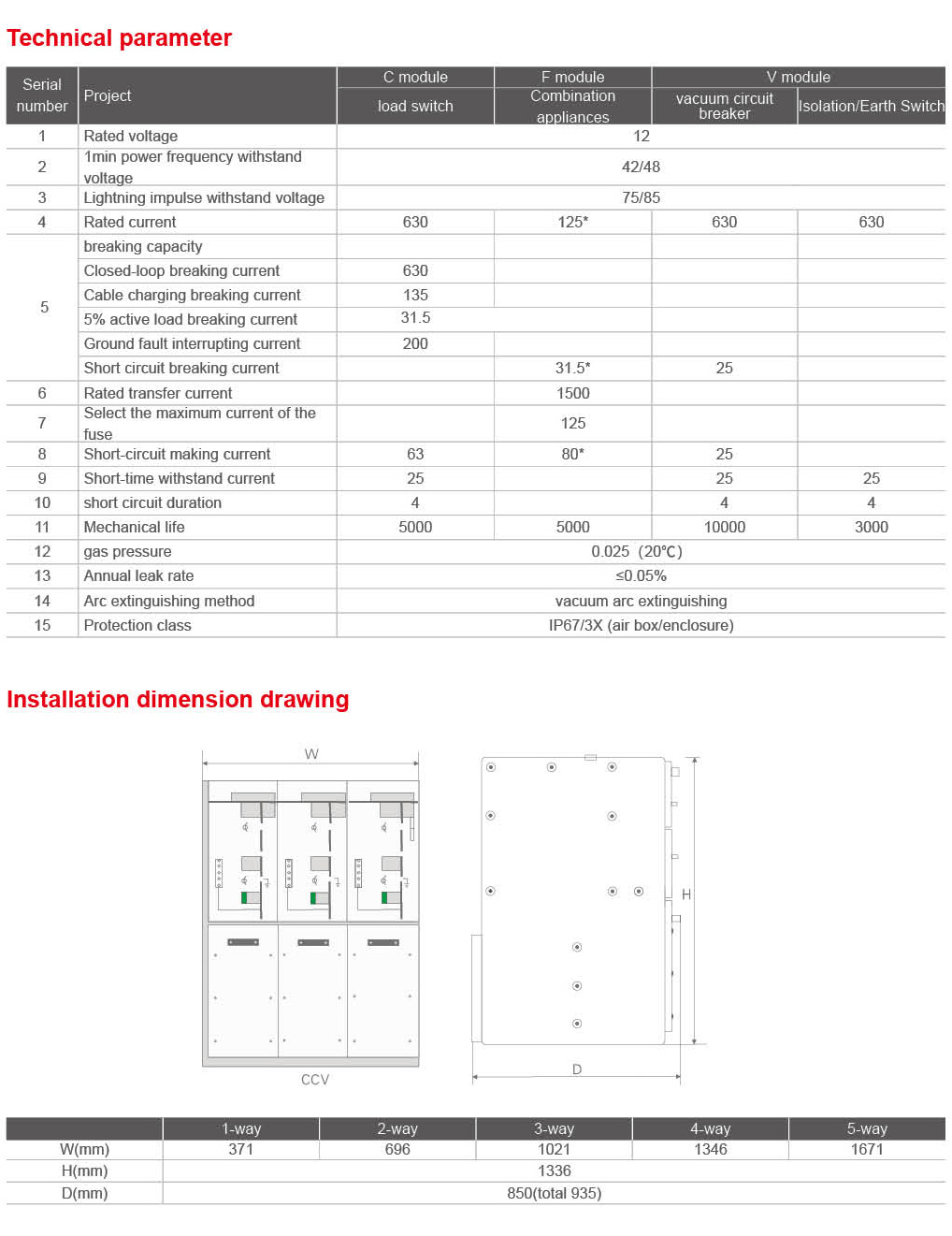 QYAir-12/T630-12 Environmentally friendly gas-insulated metal-enclosed switchgear